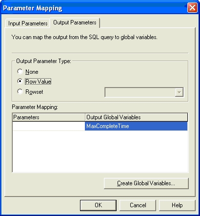 Because there is only one value being returned by this SQL statement, I can map it to an Output Global Variable (Figure 5)