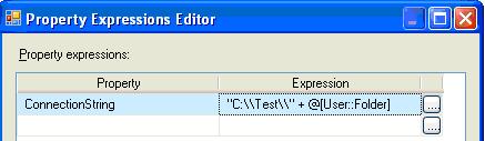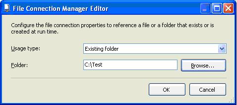 In Properties for the new connection you just created, add a new Expression for the ConnectionString. "C:\\Test\\" + @[User::Folder]