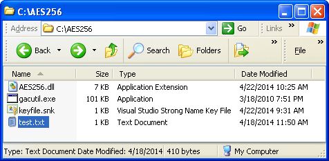 Download the attached "test.txt" resource file to the C:\AES256\ folder...
