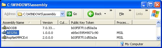 Open Windows Explorer and browse to "C:\WINDOWS\assembly\" to confirm the addition of the AES256 assembly to the Global Assembly Cache (GAC)
