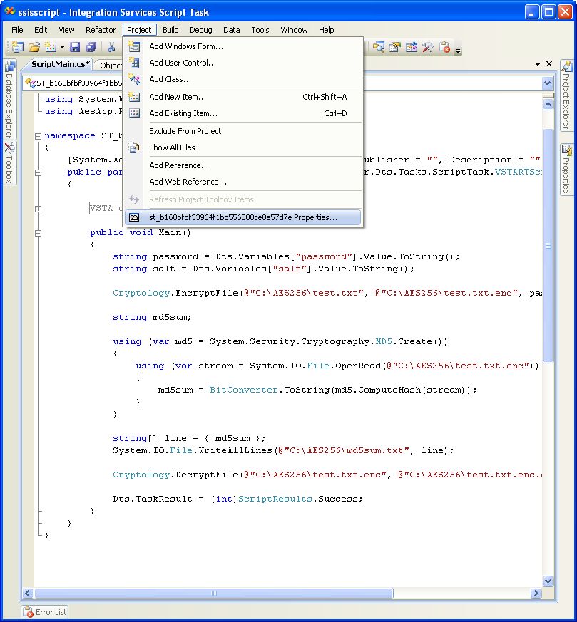 14. Add a reference to the AES256 assembly in the script task