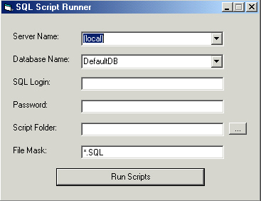 I'm not convinced there isn't an easier way, but I know I can solve the problem with some old-fashioned code. SQL-DMO gives you various Execute methods for running scripts, the FileSystemObject is the easiest way to work with the file system. Before I build, let's run through what we need for features. Even though this is a utility, a little extra time now might pay off later!