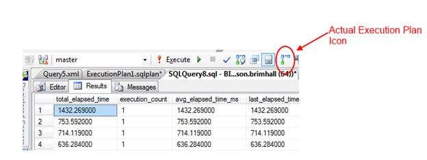 The second method I mentioned involves running the query to produce an execution plan. This is not displayed automatically and requires that it be turned on in order to retrieve the plan from this method. Enabling the actual execution plan is very easy.