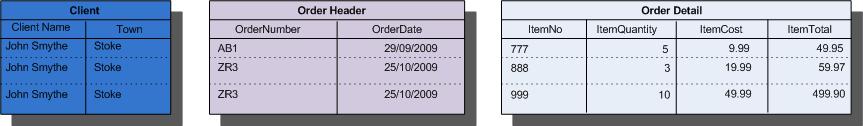So there will be 1 new ID added to the "Client" table, two (and the corresponding Client ID) to the "Order Header" table, and three (and the corresponding Order Header ID) to the "Order Detail" table. This will maintain referential integrity on the source data.