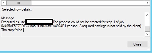 A required privilege is not held by the client. The step failed.