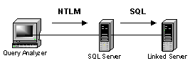 Server, and the SQL Server uses SQL Server authentication to get to the linked