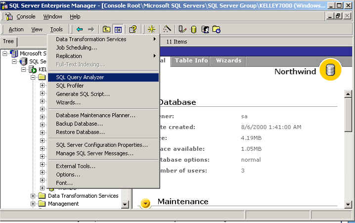 We'll see more about bringing up Query Analyzer via isqlw in a