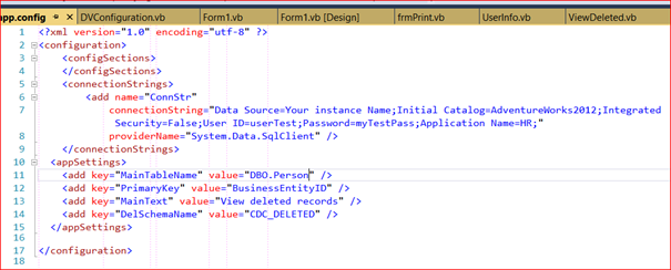 Let’s start Visual Studio or double click on solution file. We'll browse and delete records from a single table. In the app.config you have to change connection string. Replace “YourInstanceName” with name of your instance, replace password for the user with one you created.