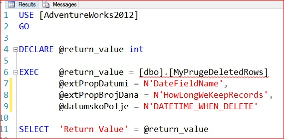 Let’s execute stored procedure with the following parameters: