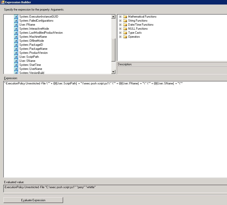The issue when attempting to execute a PoSh process arises when the arguments string (or expression if you're using one) is not properly formed. Indeed this has caught out many people in the past, so I thought it was worth visiting to detail exactly how to configure the process itself. The proper forming of the arguments string is achieved by way of correctly escaping any characters that may otherwise be interpreted differently.