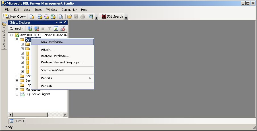 Now open SQL Server Managment Studio and create a new database...
