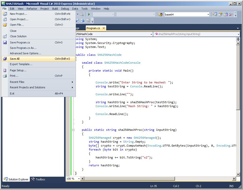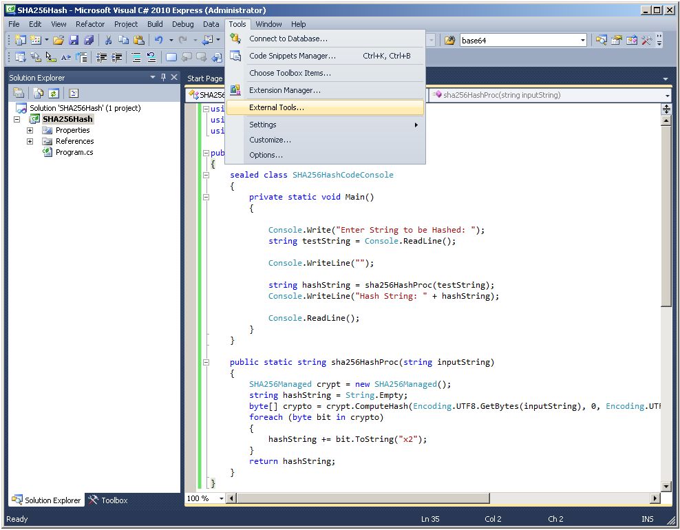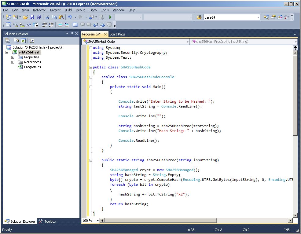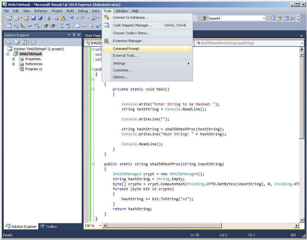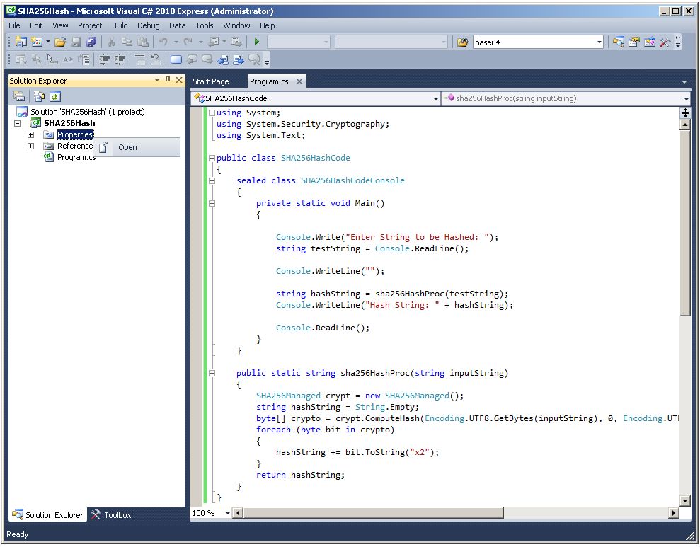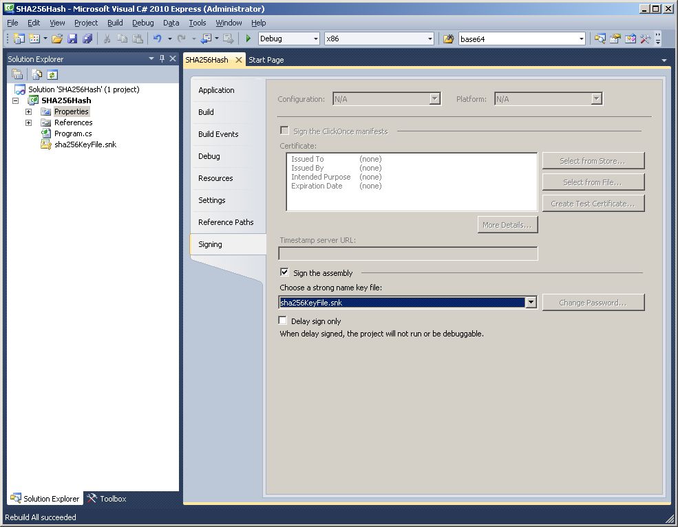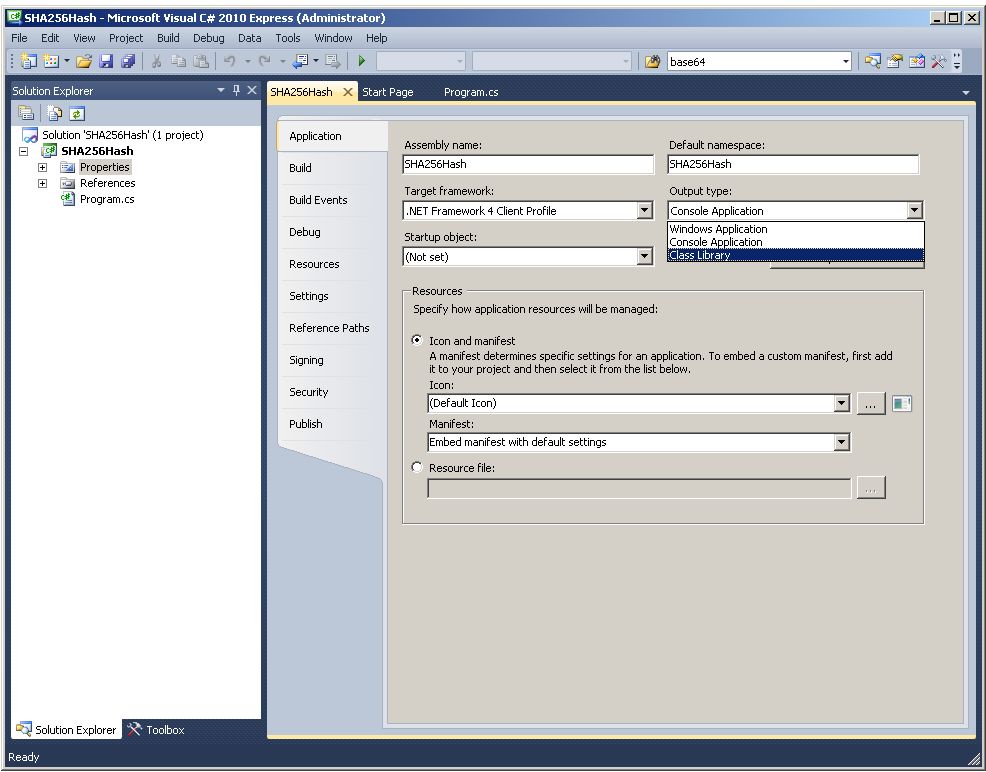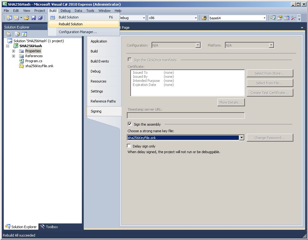 - Compile a strongly-named CLR assembly called SHA-256Hash using Microsoft Visual C# 2010 Express