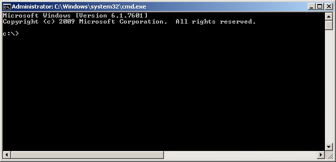 The command console opens up in the C:\ root directory.