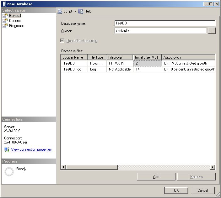 ...name it TestDB and click the OK button.