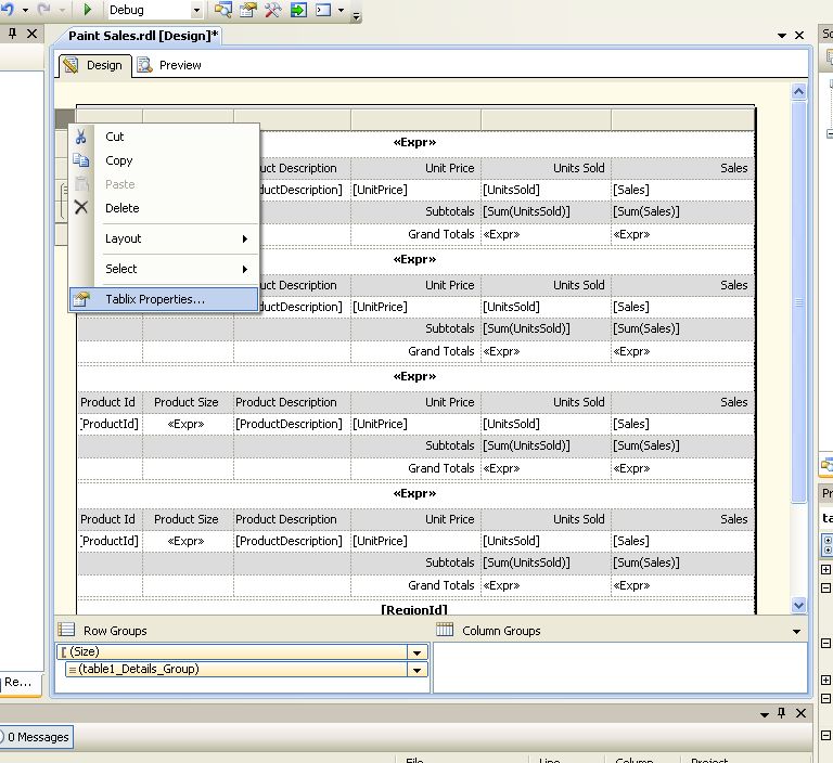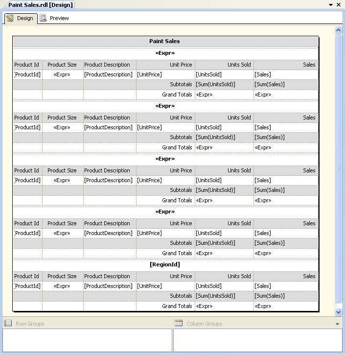 - Open Business Intelligence Development Studio and load the attached "Paint Sales.rdl" report file.