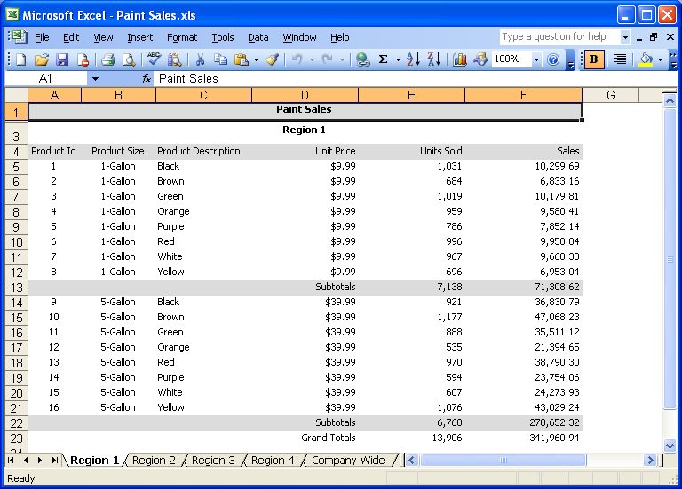 The exported Excel file should be similar to the attached "Paint Sales.xls" file.