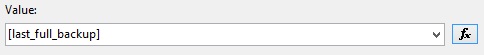 In the same example above go back into the text box properties, and then within the general tab you will click on the expression button for the value "last_full_backup":