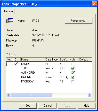 when you go to Table Properties (shown below), that the table shows the FAQBODY