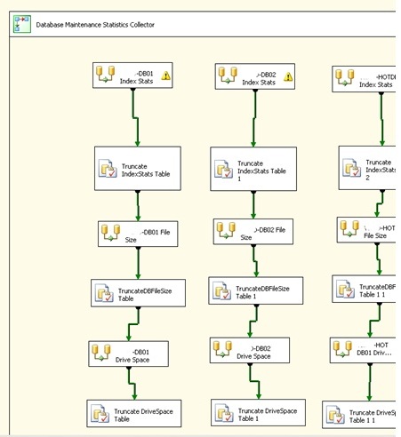 The index statistics are consolidated on the admin server by the following SSIS package which also consolidates the database file size and server hard-drive statistics: