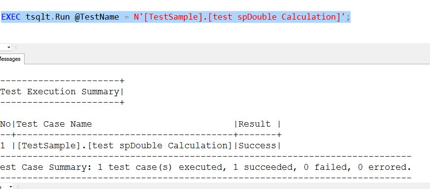 GOEXEC tsqlt.Run @TestName = N'[TestSample].[test spDouble Calculation]';