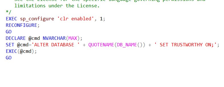 Note: You do need to enable the CLR and the Trustworthy setting. The SetCLREnabled.sql file does this in the following way if you have no already done so.