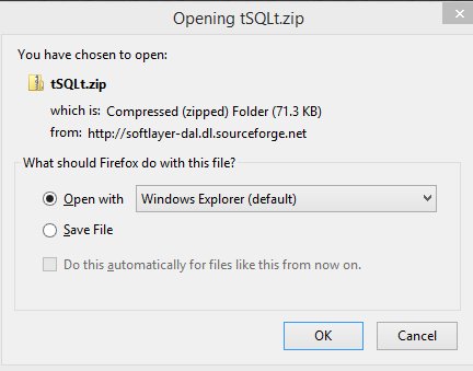 The installation for tSQLt is very simple. The latest download is a .zip file that you copy to your machine and open up in the Windows Explorer. When you click the download link from tsqlt.org, you'll be redirected to Sourceforge.net and will see the download begin.