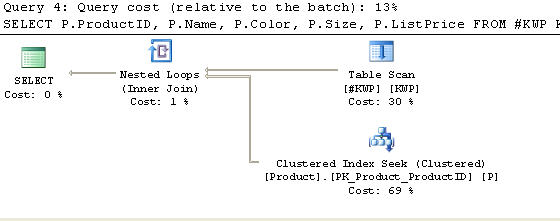 The important part of this is that there is no Scan count on the Product table. Here is what the actual query plan looks like: