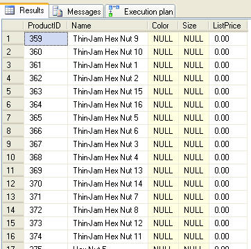 As I mentioned before, since AdventureWorks only has just over 500 products, this technique doesn't do much. When I used it against an item table of auto parts of over 1.2 million the performance differences was astounding.