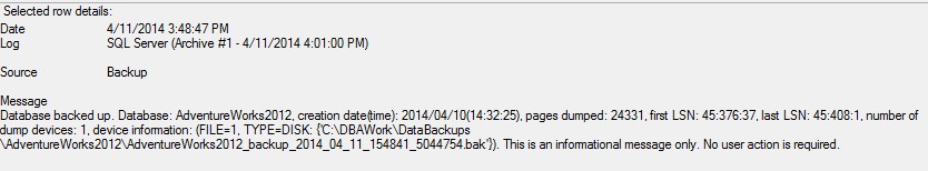 This is in contrast to the SQL Server error log. If I examine this log, it will only show the following: