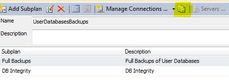 First, I double click to edit the Maintenance Plan. Once the Maintenance Plan window opens, go to the Reporting and Logging window by clicking on the icon highlighted below.