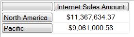 This example returns only the Sales Territory Groups where Internet Sales Amount is greater than $9M.