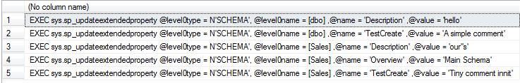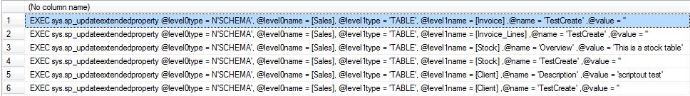 Things get more interesting when you want to script out all the extended properties from a database for modification, wrapped in the "pr_updateextendedproperty" system stored procedure. So let's delve into this.
