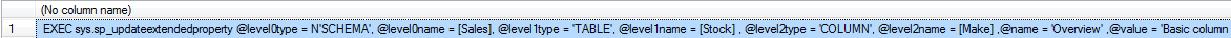 EXEC sys.sp_updateextendedproperty