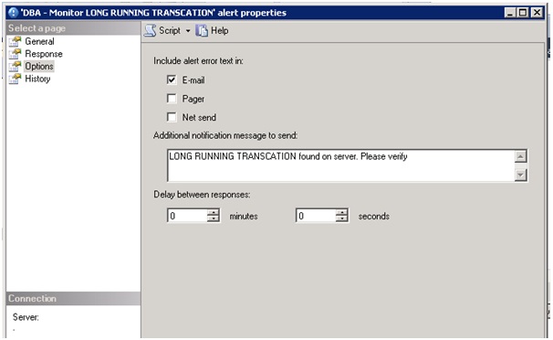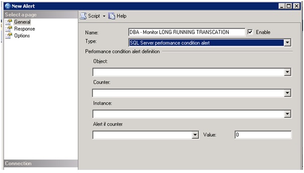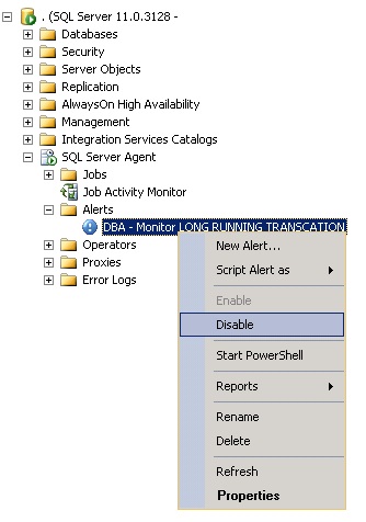 To have more proactive way of monitoring long running transactions, we can use SQL Server Agent alerts. Here is a step by step procedure to set up these alerts.