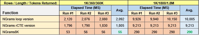 Now that you know how it works, let’s wrap it up in an iTVF. Without further ado, NGrams8K…