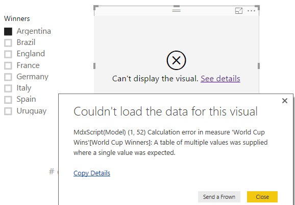 World Cup Winners (switching) = IF(COUNTROWS('World Cup Wins') = 1;VALUES('World Cup Wins'[Year]);COUNTROWS('World Cup Wins'))