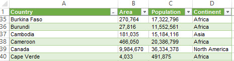 For the intial examples in this article, I'm going to use a simple table of all the countries in the world, with their population and land area. This data was sourced from Wikipedia. Both an Excel spreadsheet with the data, and a PowerBI desktop file that includes all the measures created in the examples, are included for download (see the Resources section).