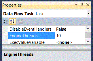 Figure 19. Properties of a data flow showing the EngineThreads property.