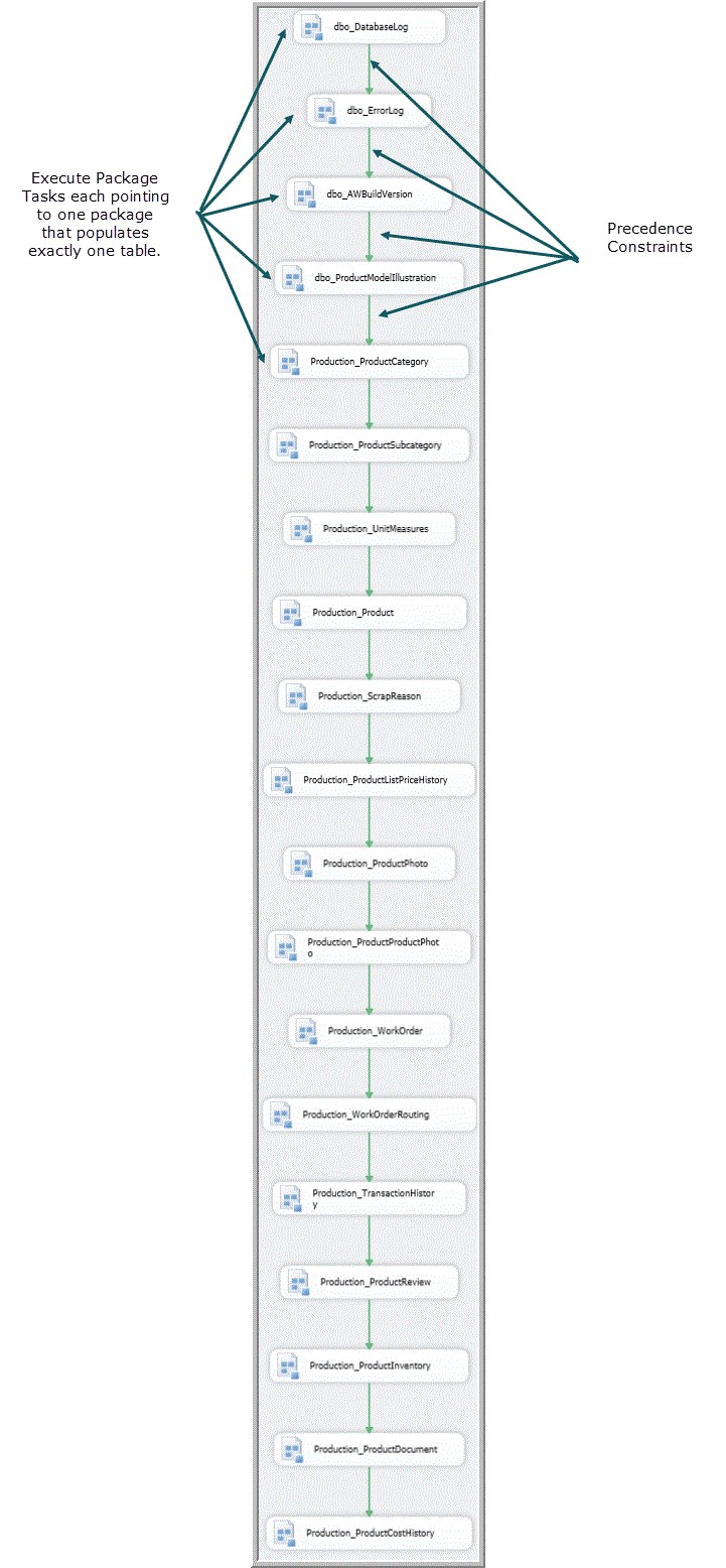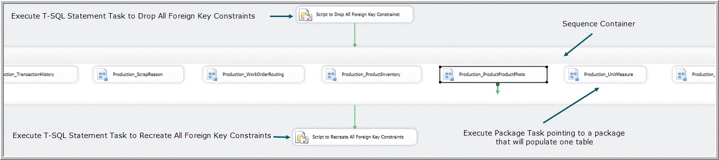 Figure 11shows the control flow for a _Main package that drops constraints, populates tables and recreates constraints.