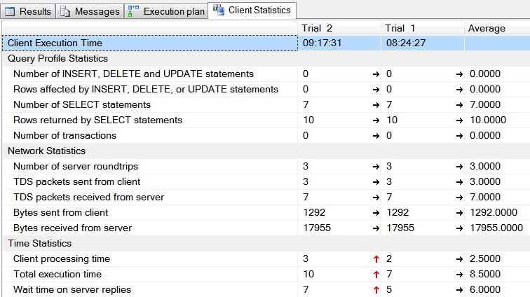 That doesn’t look too different that the Local Fast_Forward cursor’s plan except that it’s only executed once, but the real benefit is seen in the Client Stats.