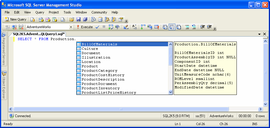 essentially the same way. Figure 3 shows Intellisense against an AdventureWorks