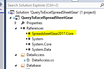 In order to achieve the second step, start Visual Studio Community Edition (or some other licensed Edition), open the solution file (you can find it in the attachment of the article) and add missing reference. As I wrote earlier, SpreadSheetGear is commercial software that cannot be distributed without license.