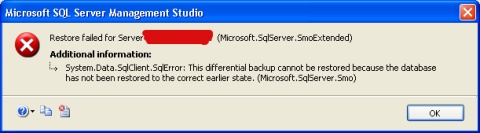 - Monday 09:15am the DBA takes a differential backup of the primary and attempts to restore to the secondary but receives the following error message dialog.