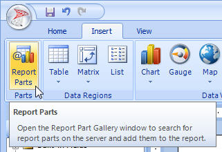 The tooltip above pretty much explains what report parts do, and how they work. A great idea - so where are they in SSRS?
