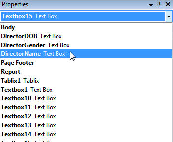 It's only a small niggle, but it's nice to be able to use a drop list to choose for which report item you want to set properties: