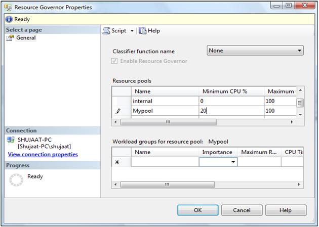 The Resource Governor is implemented by defining resource pools, workload groups and Classifier functions. So we must have an understanding of all of three of them. Each is described below.