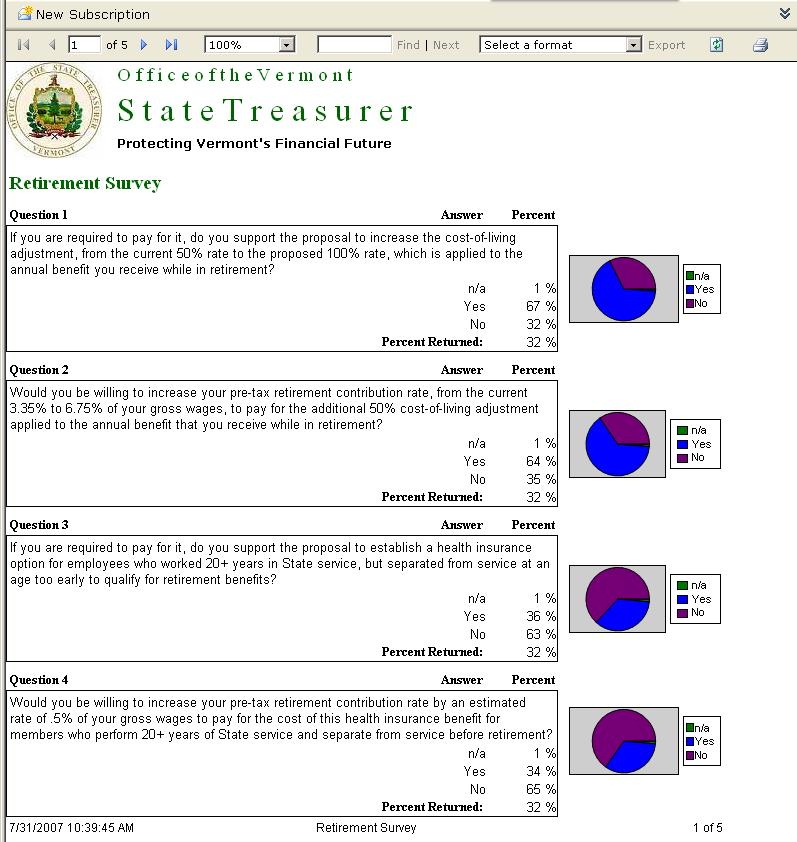 Complete survey results analysis available at: http://www.vermonttreasurer.gov