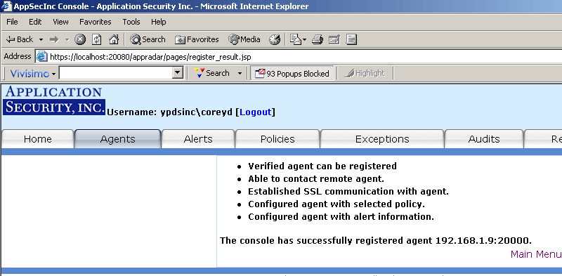 Once you click on the Finish button, you will see the following screens to confirm the agent has been registered (Figure 8):