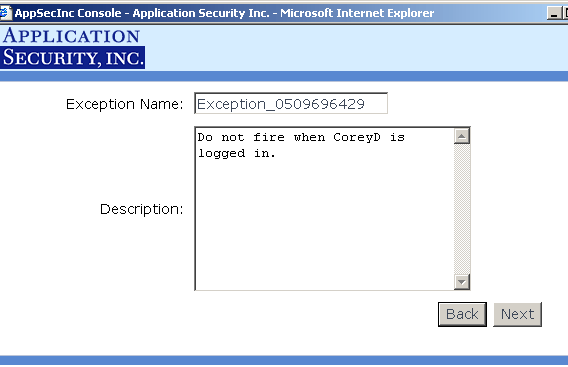 A4. AppRadar™'s “exceptions” engine acts as a filter for policy rules. Instead of turning off a particular rule, users can set an exception so that alerts will not fire under specified conditions. For example, if AppRadar™ checks for “Database Stopped” on a particular Sensor, you might want to create an exception for when the database user is an administrator. Then, if the database is stopped, the Sensor will only fire an alert if the database user is not an administrator.