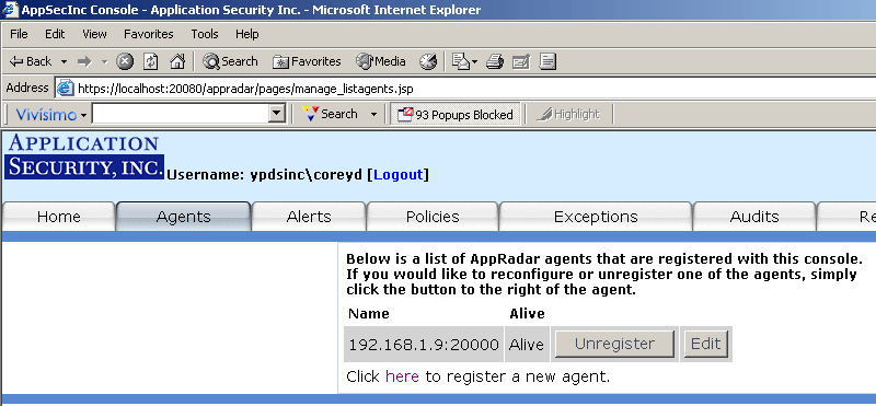 You will need to register each AppRadar Agent you installed (see Figure 4) by clicking on Register New AppRadar Agent link (shown above in Figure 3).